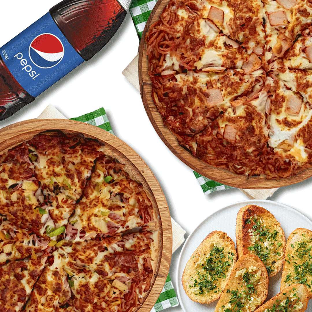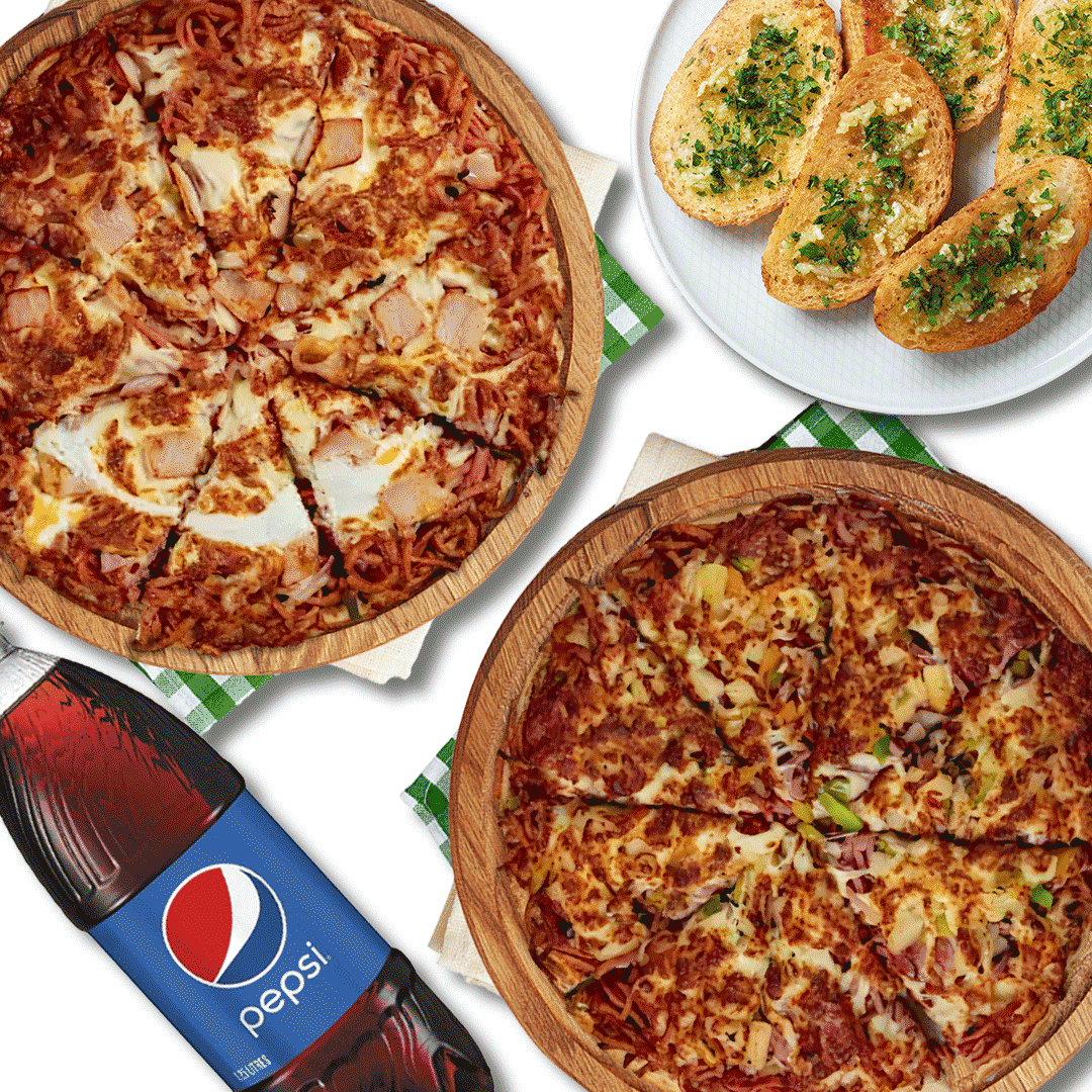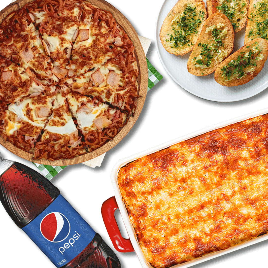 Deal 4$37.90Large pizza, main pasta, garlic bread, 1.25L soft drink