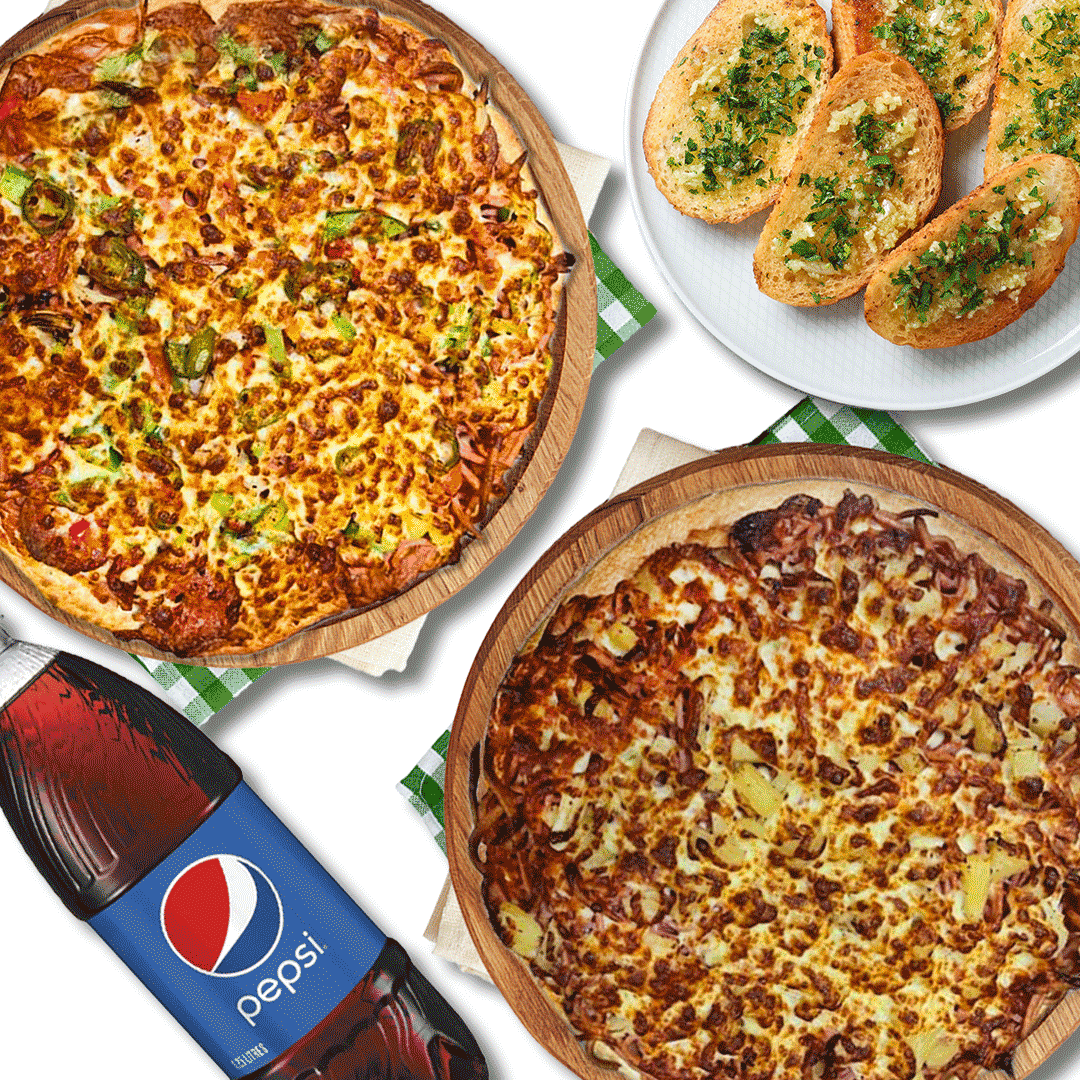 Deal 2$37.902 Large Pizza, garlic bread, 1.25L soft drink