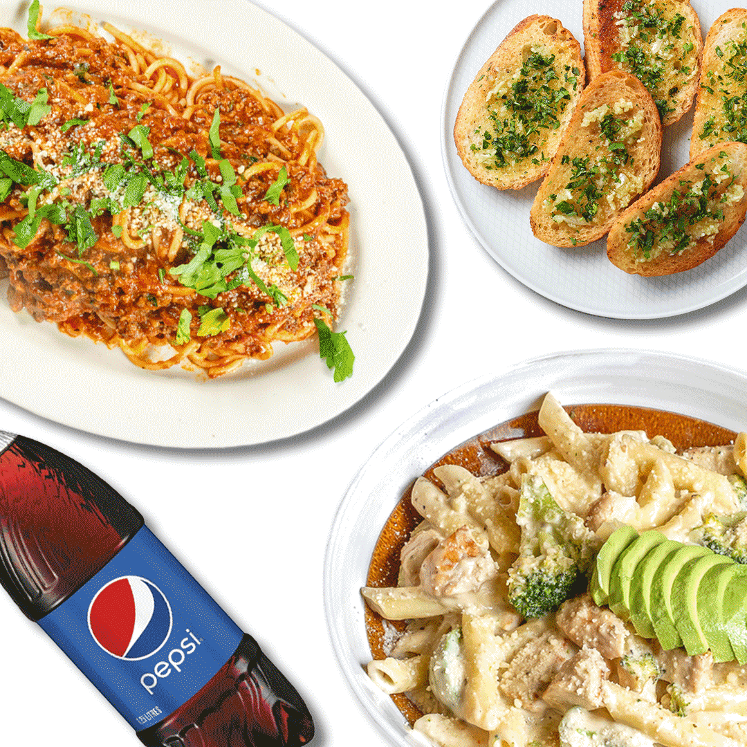 Deal 7$39.902 pastas, small garlic pizza, 1.25L soft drink
